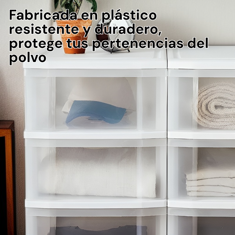 ● Fabricada en plástico resistente y duradero, protege tus pertenencias del polvo, la humedad y posibles daños, manteniéndolas siempre en perfecto estado.