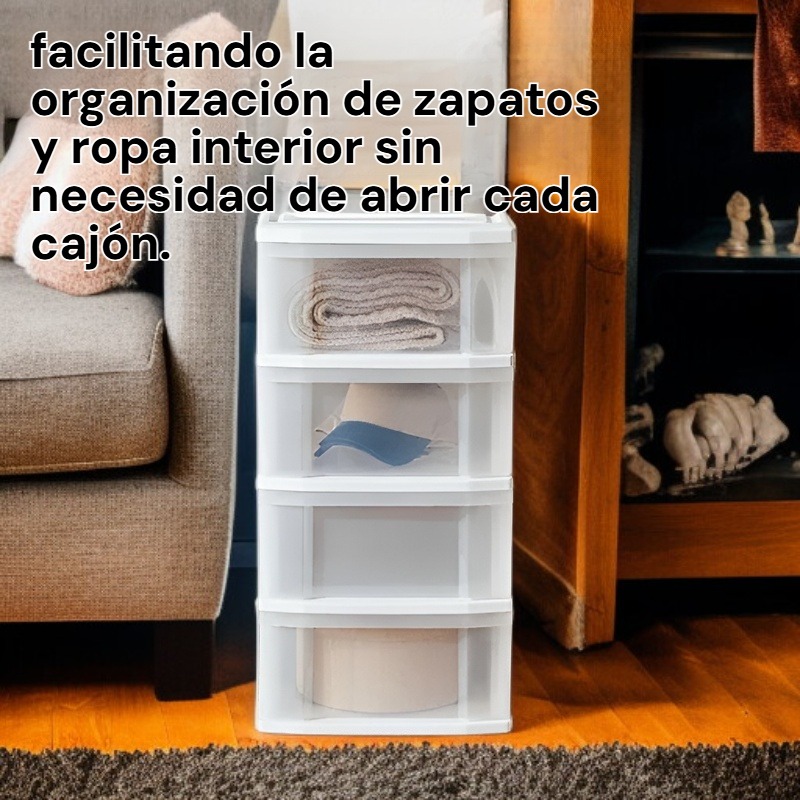 ● Diseño transparente que permite visualizar fácilmente el contenido, facilitando la organización de zapatos y ropa interior sin necesidad de abrir cada cajón.